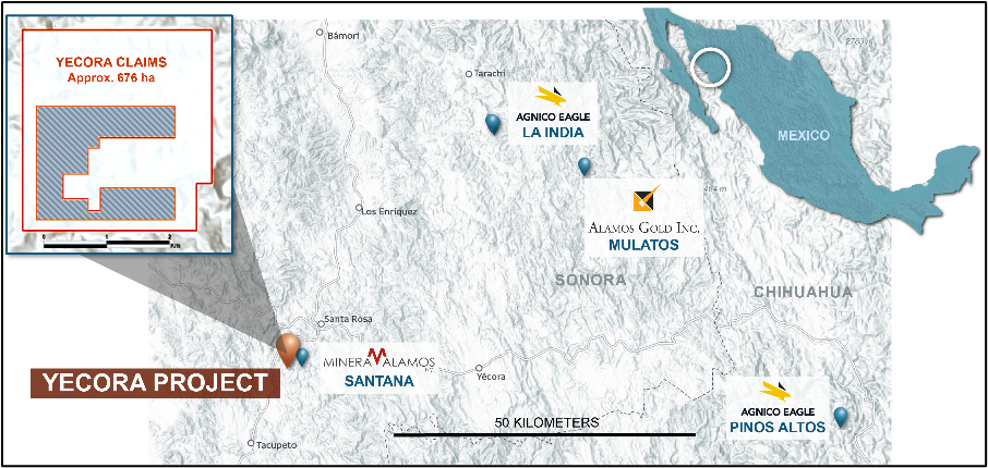 Located southeastern Sonora State in northern Mexico, 180km southeast of Hermosillo city. Accessible by public roads.  The project area has excellent infrastructure with road access from several directions, two options for 3-phase power within 2 km and access to water 4 km away